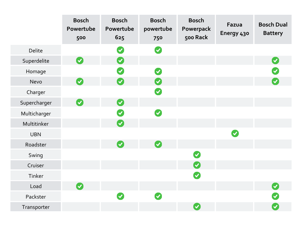 Het selecteren van de juiste batterij voor uw Riese & Müller e-bike kan complex zijn, gezien het scala aan modellen, capaciteiten en formaten. Het is cruciaal een batterij te kiezen die niet alleen compatibel is met uw fiets, maar ook voldoet aan uw specifieke rijbehoeften. Voor een overzicht van geschikte batterijen voor uw Riese & Müller fiets, zie ons kort overzicht.