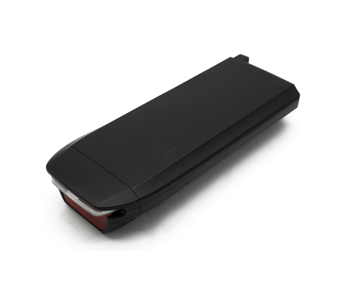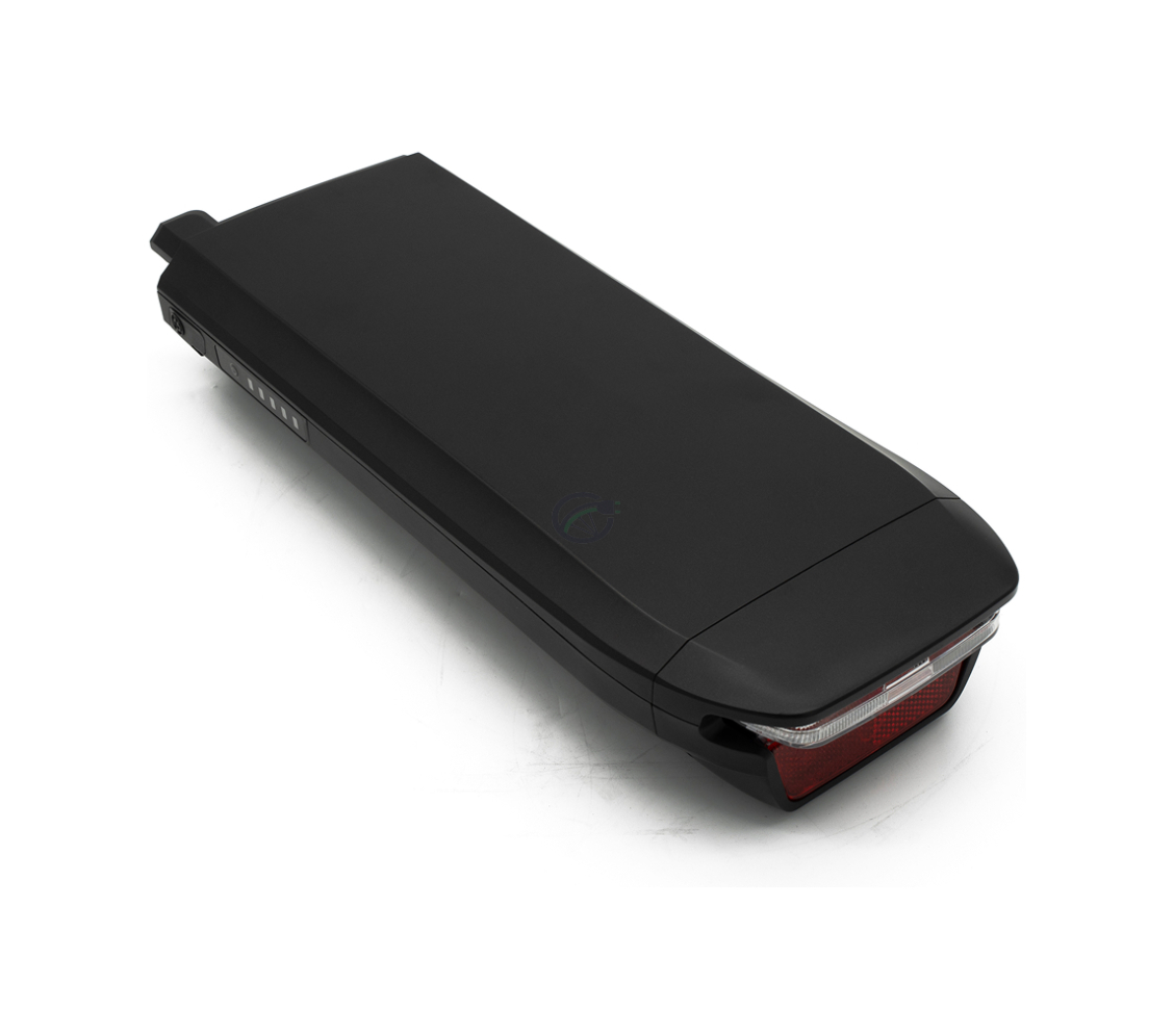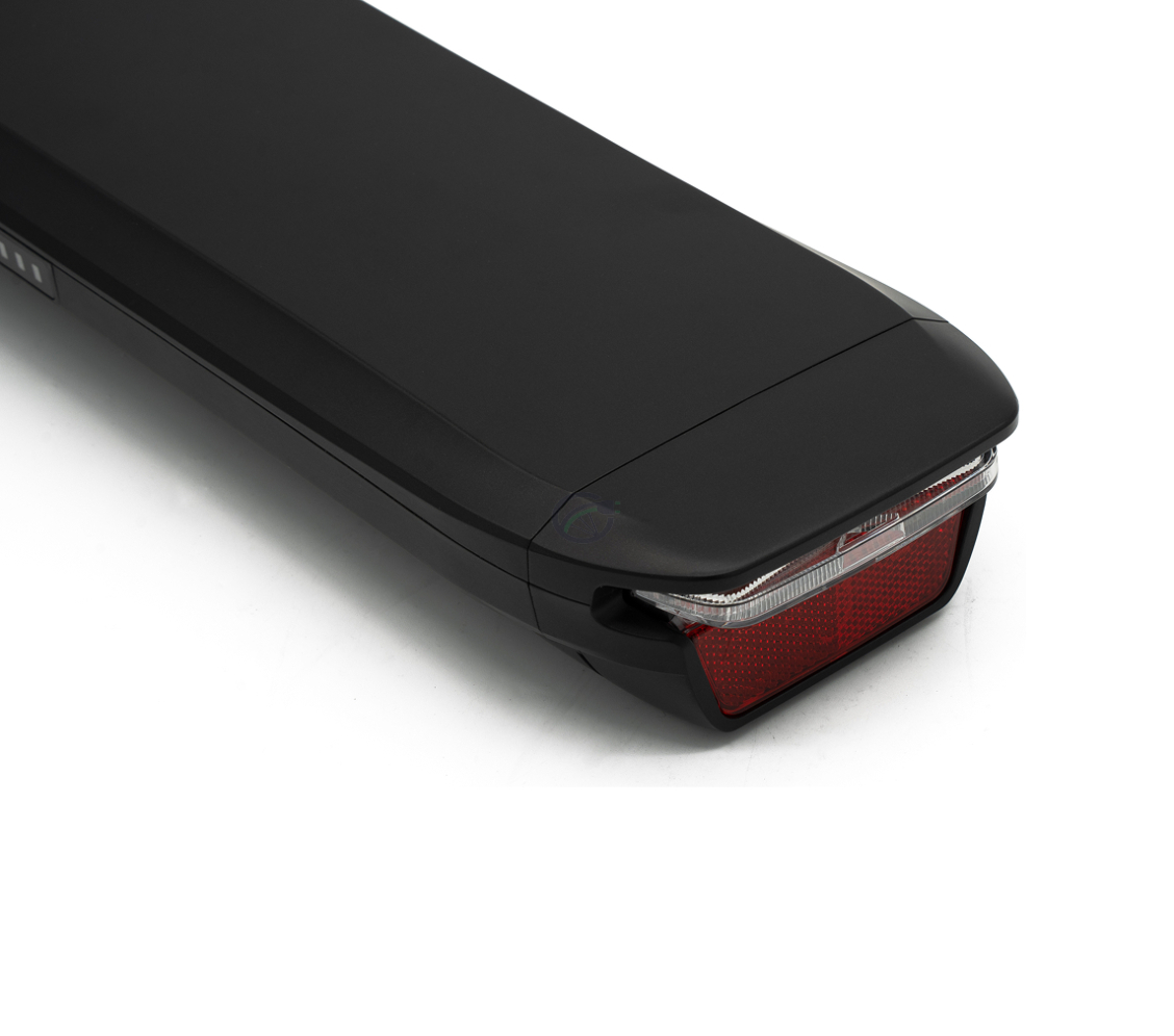 - De batterij beschikt over een geïntegreerd achterlicht en reflector.